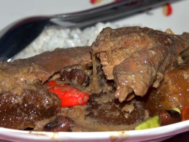 Gudeg ceker Bu Kasno semakin nikmat dengan kuah serta bumbu areh berwarna putih yang disiram di atasnya. Sambel gorengnya juga terasa istimewa. Jika masih merasa kurang pedas, pengunjung bisa bebas mengambil sambal matang yang tersedia di dalam kendi.
